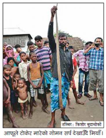 アンナプルナ・ポスト紙によると、村に住む55歳の男性は21日、田んぼでコブラにかまれた。「(コブラを)棒で殺すこともできたが、怒っていたのでかみ殺した」と話したという。