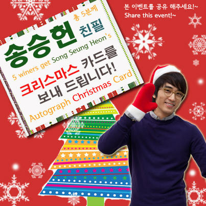 [Share] this event, and leave a [Comment] why you have to get Song Seung Heon’s autograph Christmas card~ then, send an email to ‘haewonkang@stormscompany.com’.