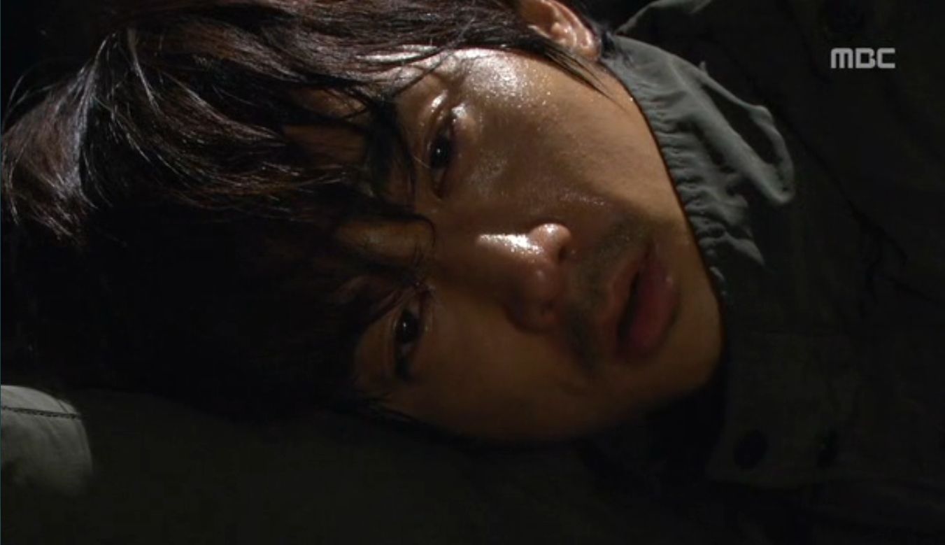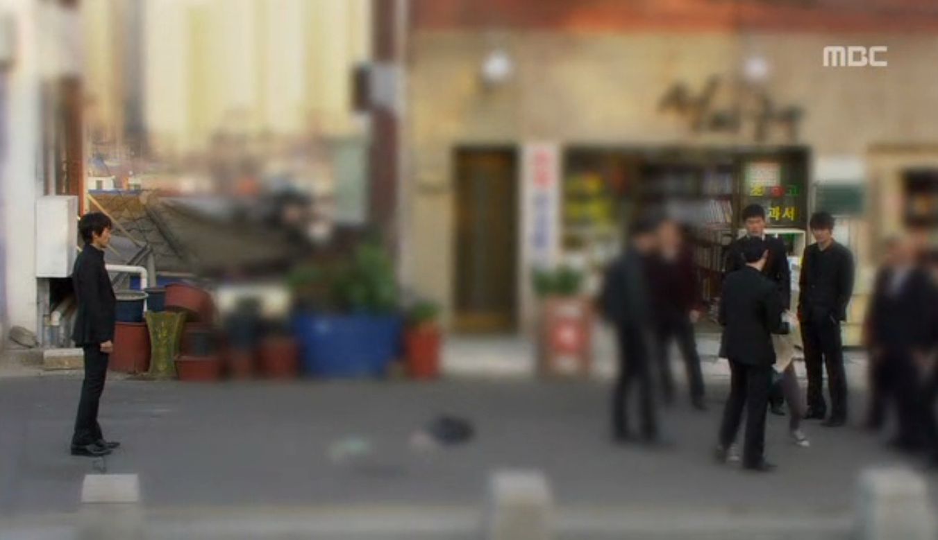 パパをかばいテサンの部下に小突きまわされる偽オタマ、ミド・・・の姿に昔の自分の姿をオーバーラップさえて感慨深げにみつめるハン・テサン。