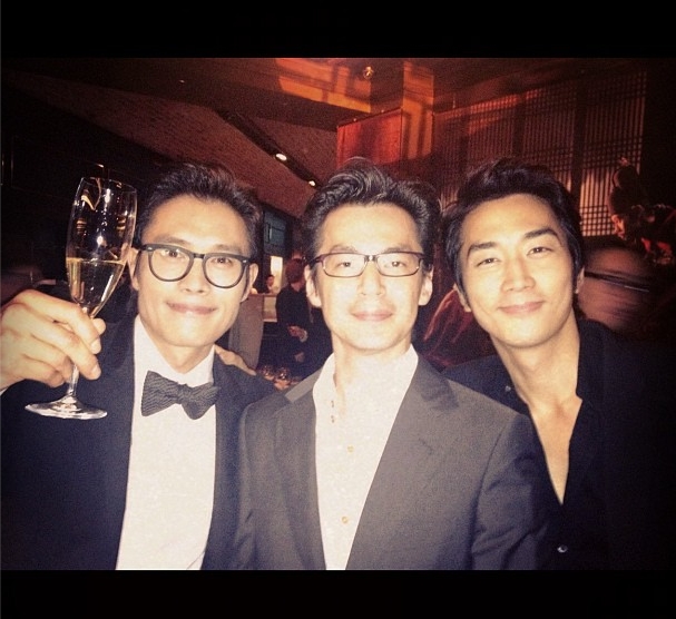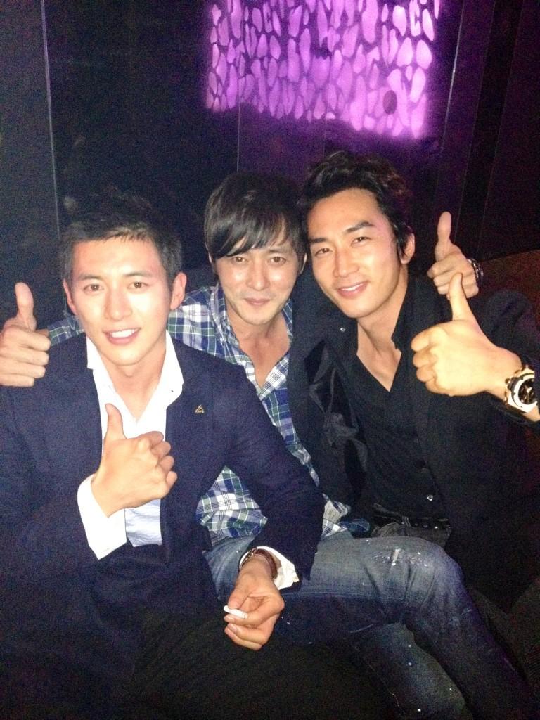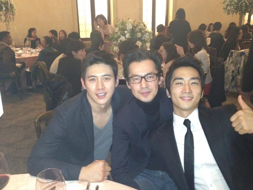 久しぶりに会ったドンゴン兄、コ·スと楽しい一カット〜ビョンホンヒョンの"光海"の試写会で^^