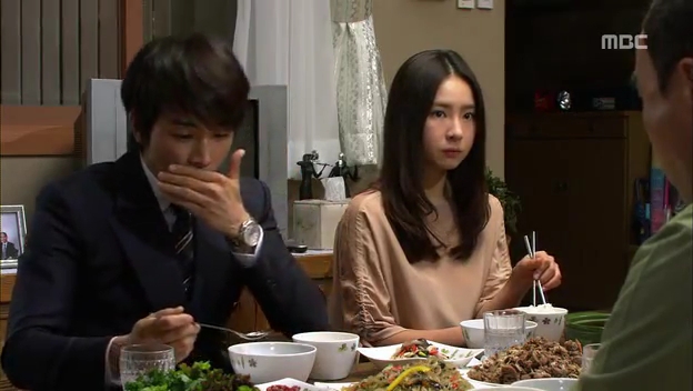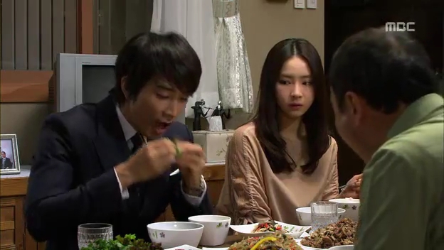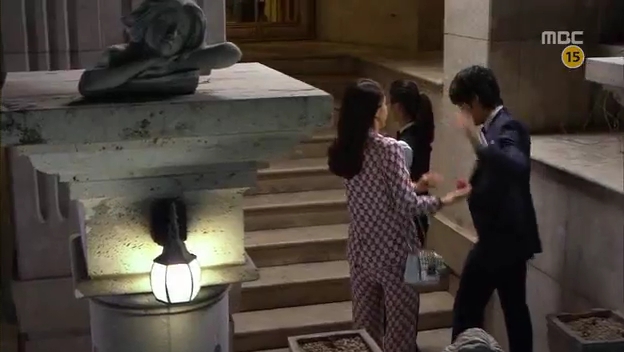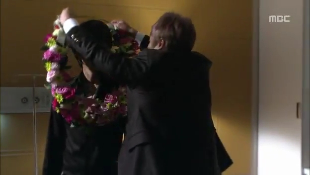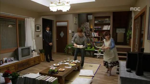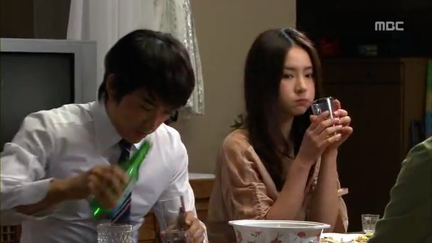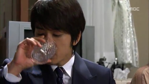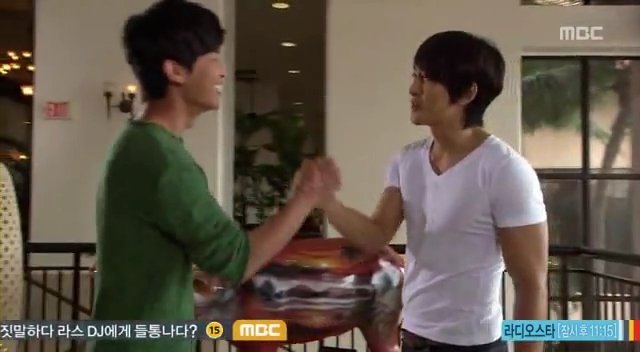しかたなく、わざとドスンとミドに渡し返すテサン。