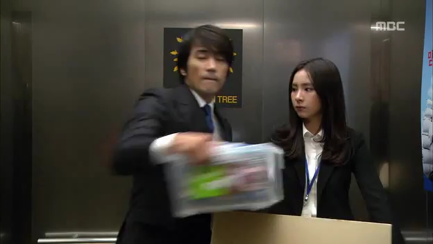 同じエレベーターに乗り合わせ、ミドの大荷物を見て半分持ってあげるテサン。