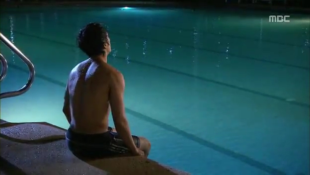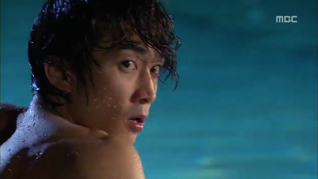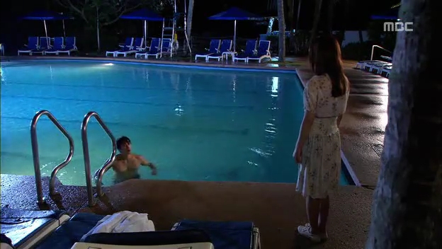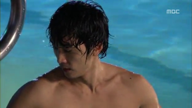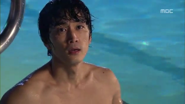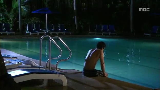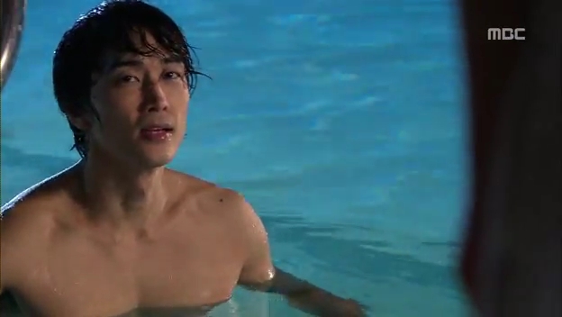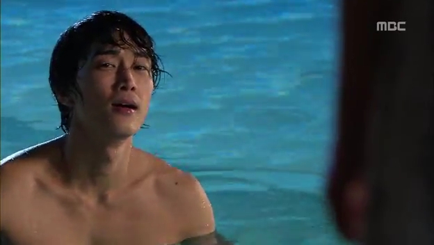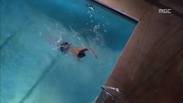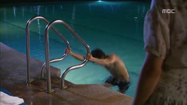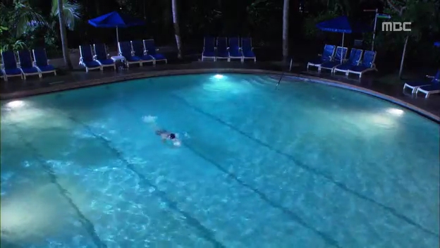ミドの出現にびっくりしてプールに飛び込むテサン。