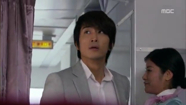 翌日、帰りの飛行機の中にミドを発見するテサン。