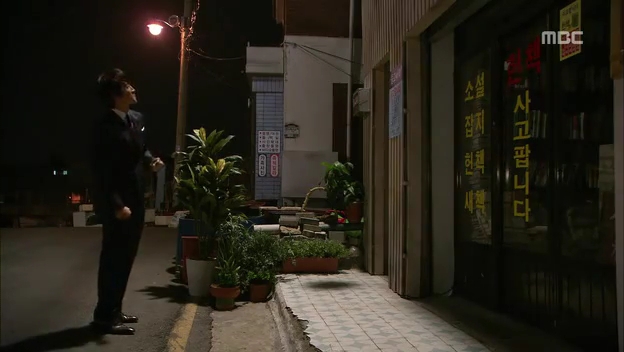 ミドパパの書店へ行き、様子をたしかめどこかに電話するテサン。